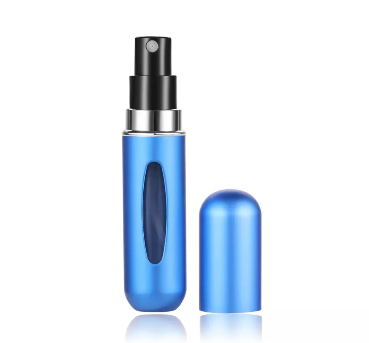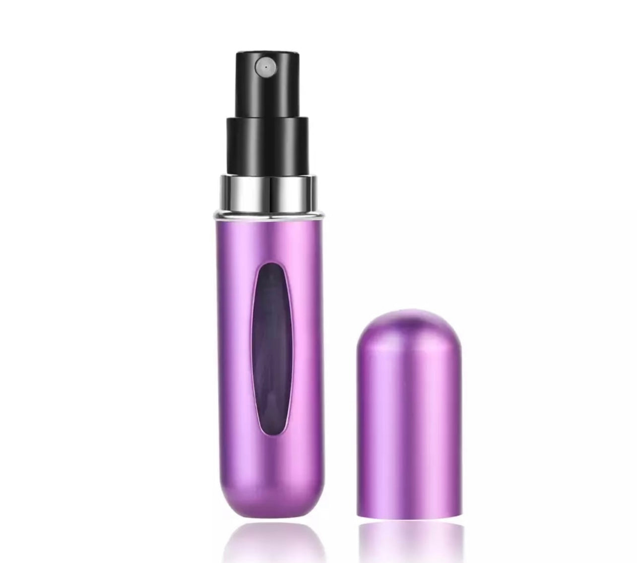 Package: 5ml refillable perfume atomiser in 8 different colours: black, blue, silver, gold, pink, red, purple and green. Different colours that are all great for taking your favourite perfume on holiday, giving as gifts or sharing with family and friends.